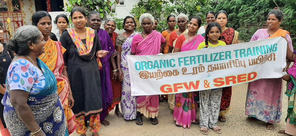 SRED believes in agroecology practices and conducts workshops and training to impart the relevant knowledge. The content includes developing collective farms, vermi compost, natural manure, natural pest control, ill effects of chemical fertilizers and pesticides, negative impacts of GMO seeds, role of women farmers in mitigating climate change, organic seed collection and importance of organic farming.