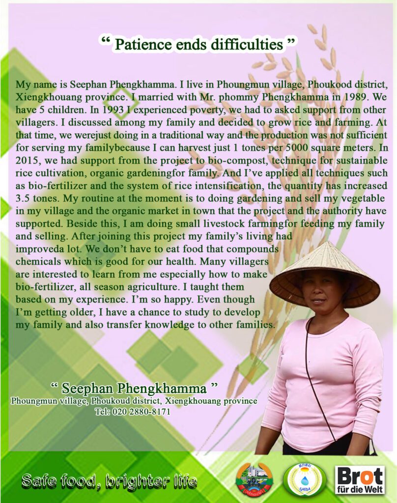 (The stories of Laryer and Seephan are adapted from the “10 Model Farmers on Organic Agriculture”, with permission from Sustainable Agriculture and Environment Development Association.)”